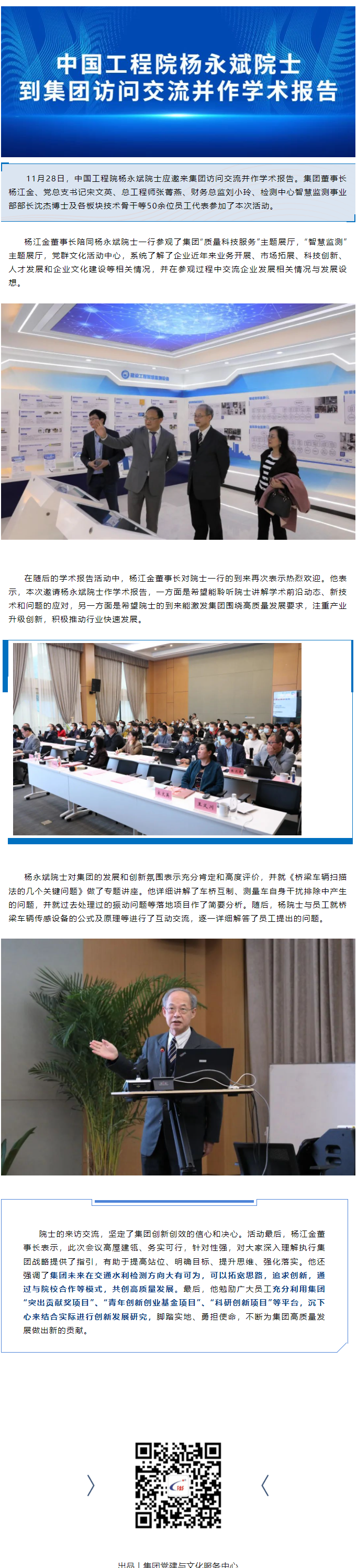 中国工程院杨永斌院士到集团访问交流并作学术报告
